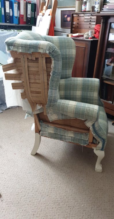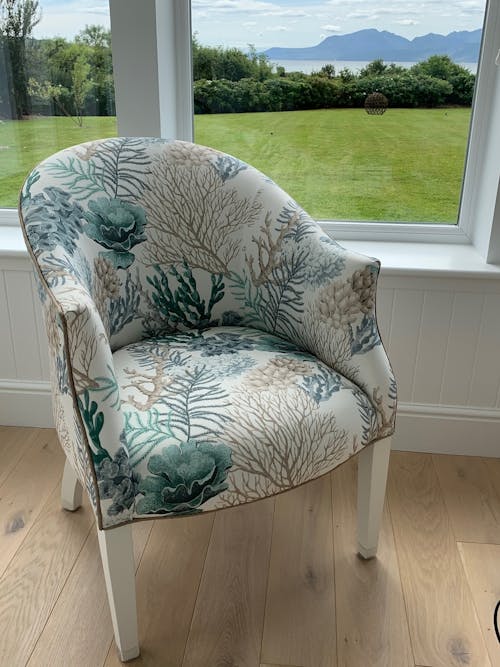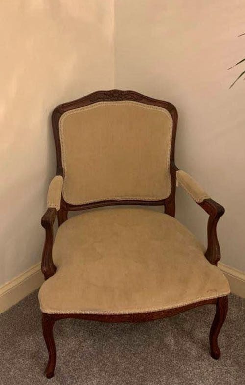 I contacted Susan Myler, Myler Décor, and explained what I was hoping to achieve, and was delighted when she said she could help. Susan already had a few pre-loved chairs in storage which turned out were all going to be perfect for my project. I was short of one though, so turned to Facebook marketplace and eventually found a vintage French armchair that would be ideal. I managed to arrange to have it collected and taken to Bute, where it would begin its new life.