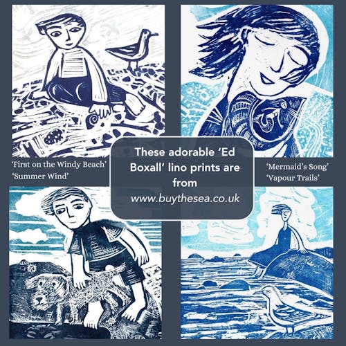 I found the four adorable Ed Boxall lino prints online at www.buythesea.co.uk, I just love them.
