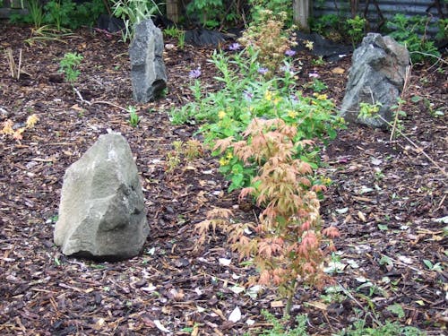 I planted a Weeping Cherry Tree and a Bramley Apple Tree. Both did very well, but sadly in 2022 the Cherry Tree succumbed to a root disease and died. Such a shame as it really was beautiful, a mass of swaying pink blossoms. I couldn’t plant anything from the same genus in the that spot as the root disease was still in the soil and would have infected the new plant, so I opted for a Weeping Birch and so far, it has been doing just fine. We have since added two more apple trees, a Katy and a Discovery, both are doing well - the apples are ripe in early autumn and guests are welcome to give them a try. Other additions are a Weeping Cotoneaster, Witchhazel, Dragon's Claw Willow and a Rowan Tree. The Rowan is quite an important tree in Scottish folklore and is often found growing near standing stones, it is said to be a symbol of protection against witches and the like. Last year I noticed a 'fairy' ornament had appeared at the foot of the Rowan tree, I have no idea who put it there?